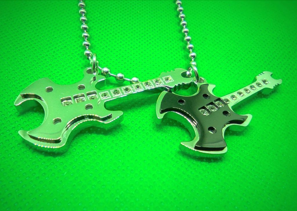 Pendentif classique guitare Stratocaster avec des strass, style classique, rock