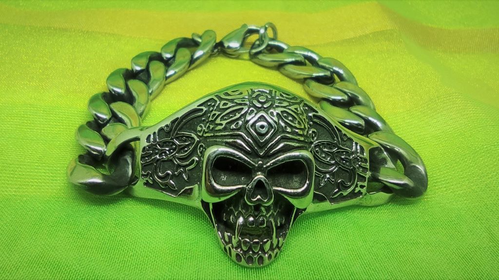Bracelet G17 gothique, tête de mort avec motifs géométriques et animaux, ajustable, style rock biker gothique